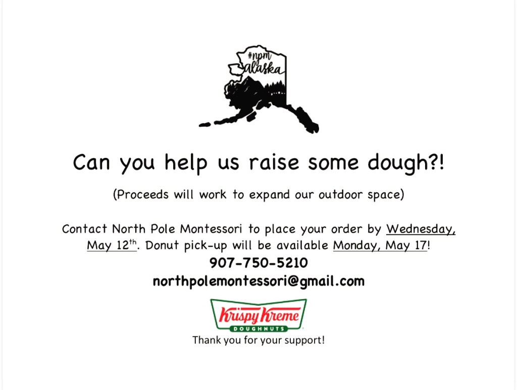 Fundraising for our playground! Posted bynorthpolemontessoriMay 7, 2021Posted inUncategorized Help us improve our outdoor space! $13.00/dozen. Share this: Click to share on Facebook (Opens in new window) Facebook Click to email a link to a friend (Opens in new window) Email Like Loading...